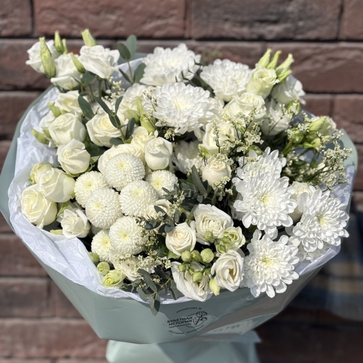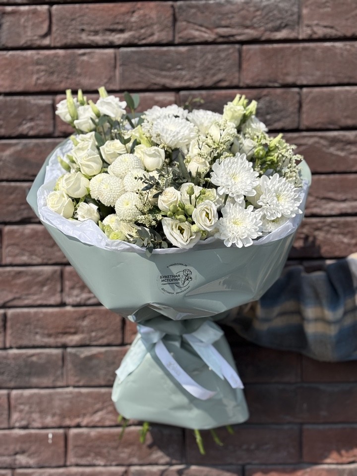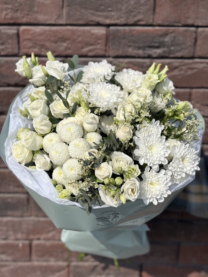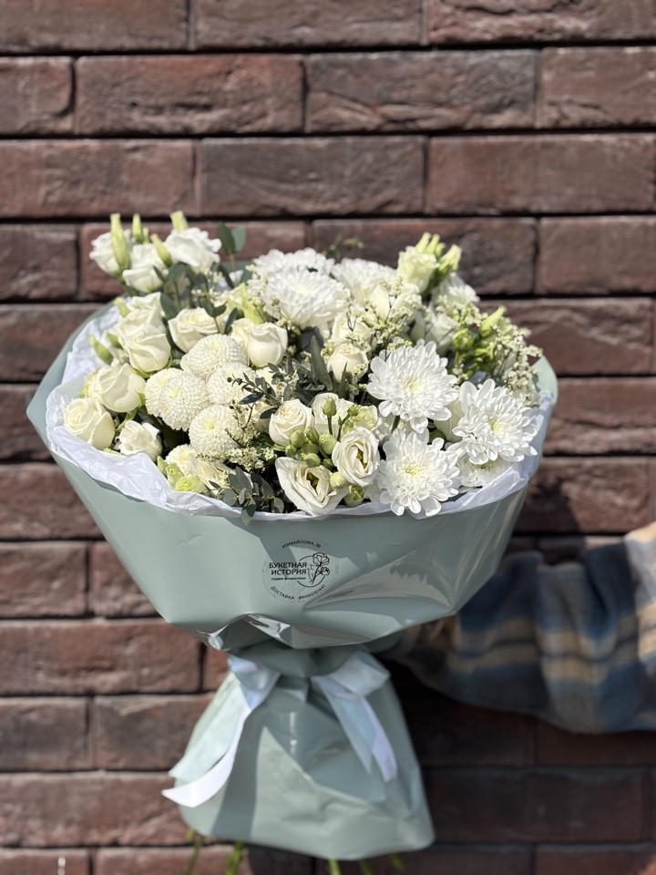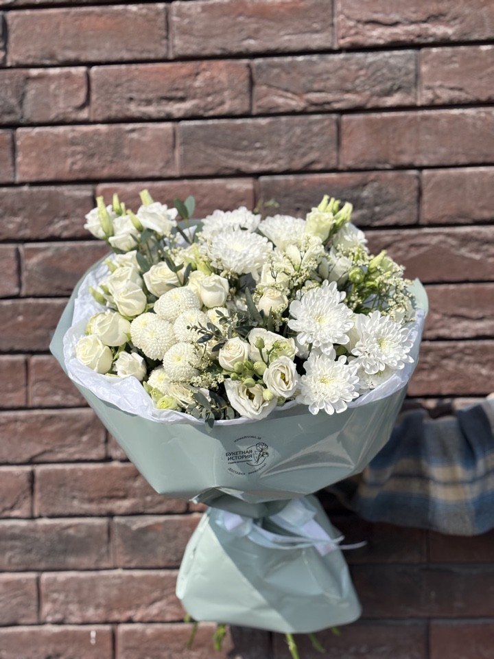 Эвелина Букет из лизиантусов,кустовых пионовидных роз и хризантем